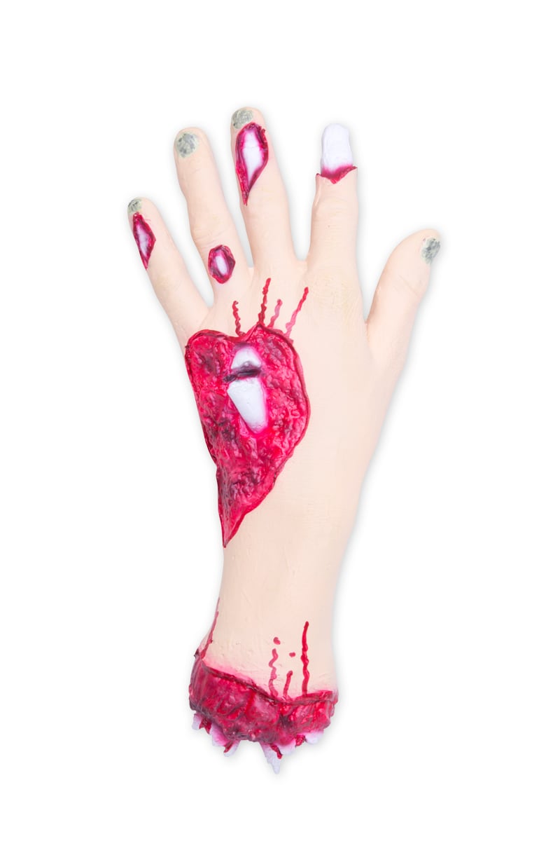 En passande dekoration till halloweenfesten eller som tillbehör för dig som ska gå på maskerad utklädd som obducent. Den här avsågade handen med både blod och avsliten hud, ger ett verkligt läskigt intryck som kan lura både stora och små.