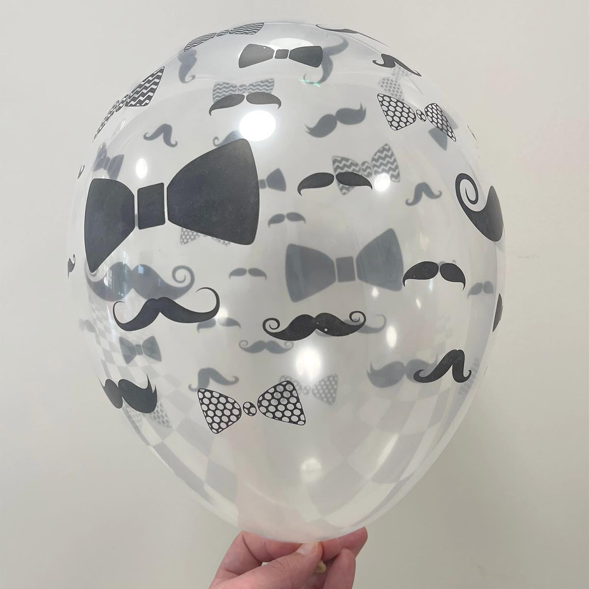 Genomskinliga ballonger med eleganta mustascher och flugor.