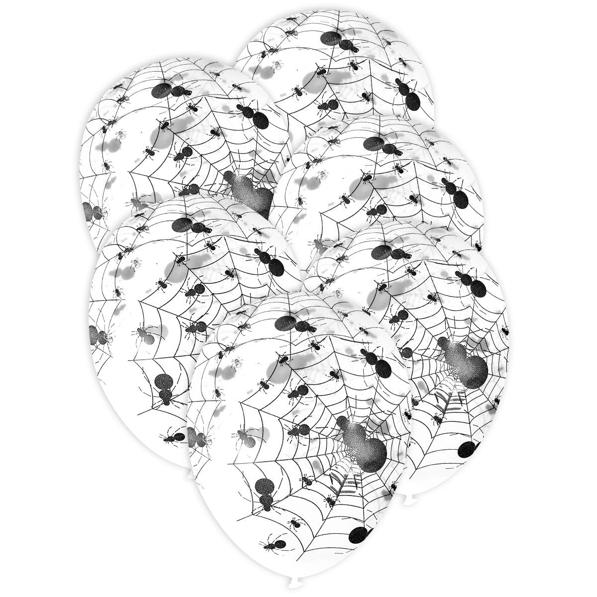 Klassiska gummiballonger i vitt/transparant med spindelnät på. Perfekt för spökfesten. Till halloween är det ett måste när det kommer tll dekorationerna och till Spidermankalaset är de också bra att ha med alla spindlar på.