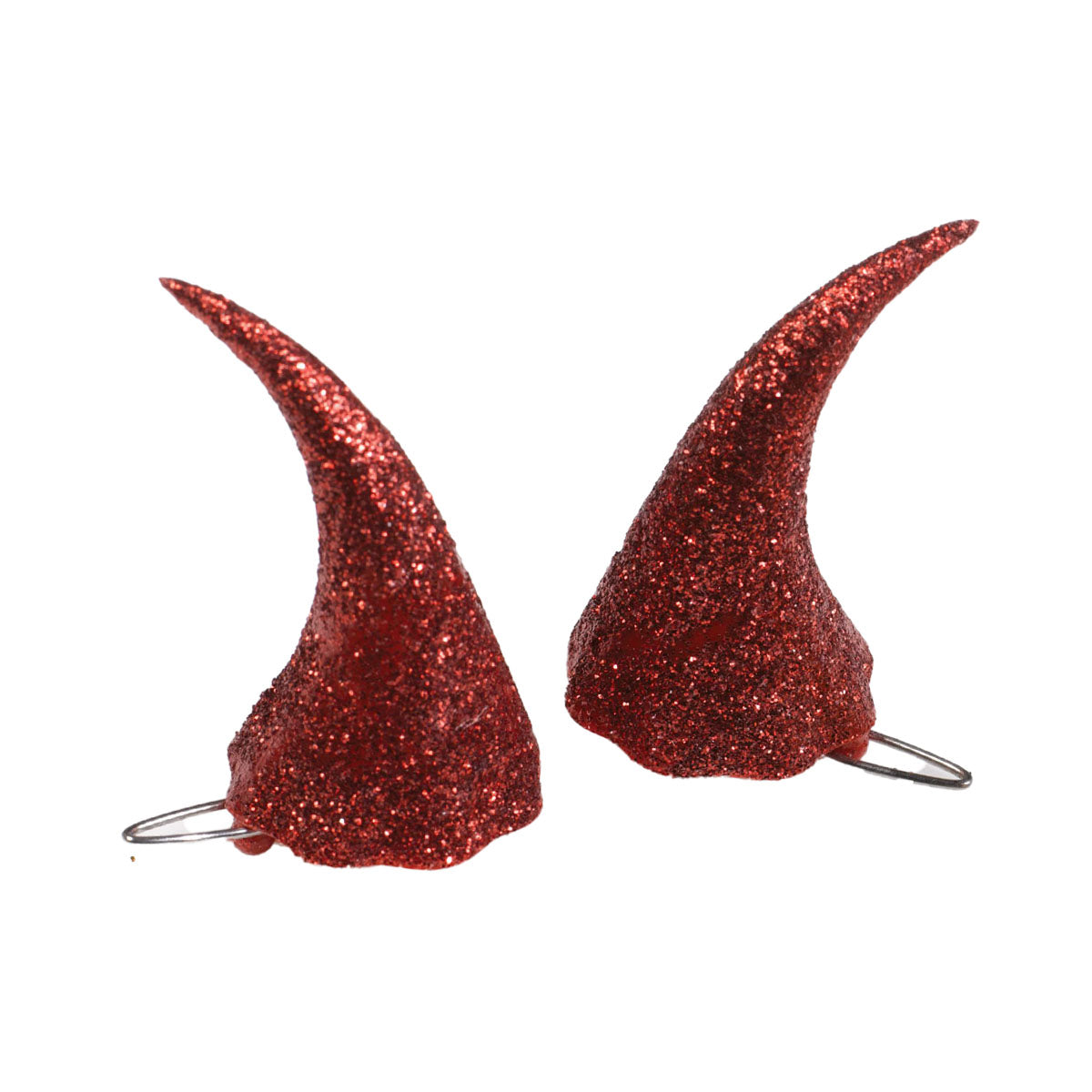 Ta din look till nästa nivå med dessa glittrande röda djävulshorn! Perfekta för halloween eller när du bara vill släppa fram din inre busiga sida. Dessa horn sitter bekvämt på plats med clips, vilket gör dem enkla att bära oavsett frisyr. Deras intensiva röda färg och glitterfinish ger en diabolisk känsla som garanterat drar blickarna till sig.