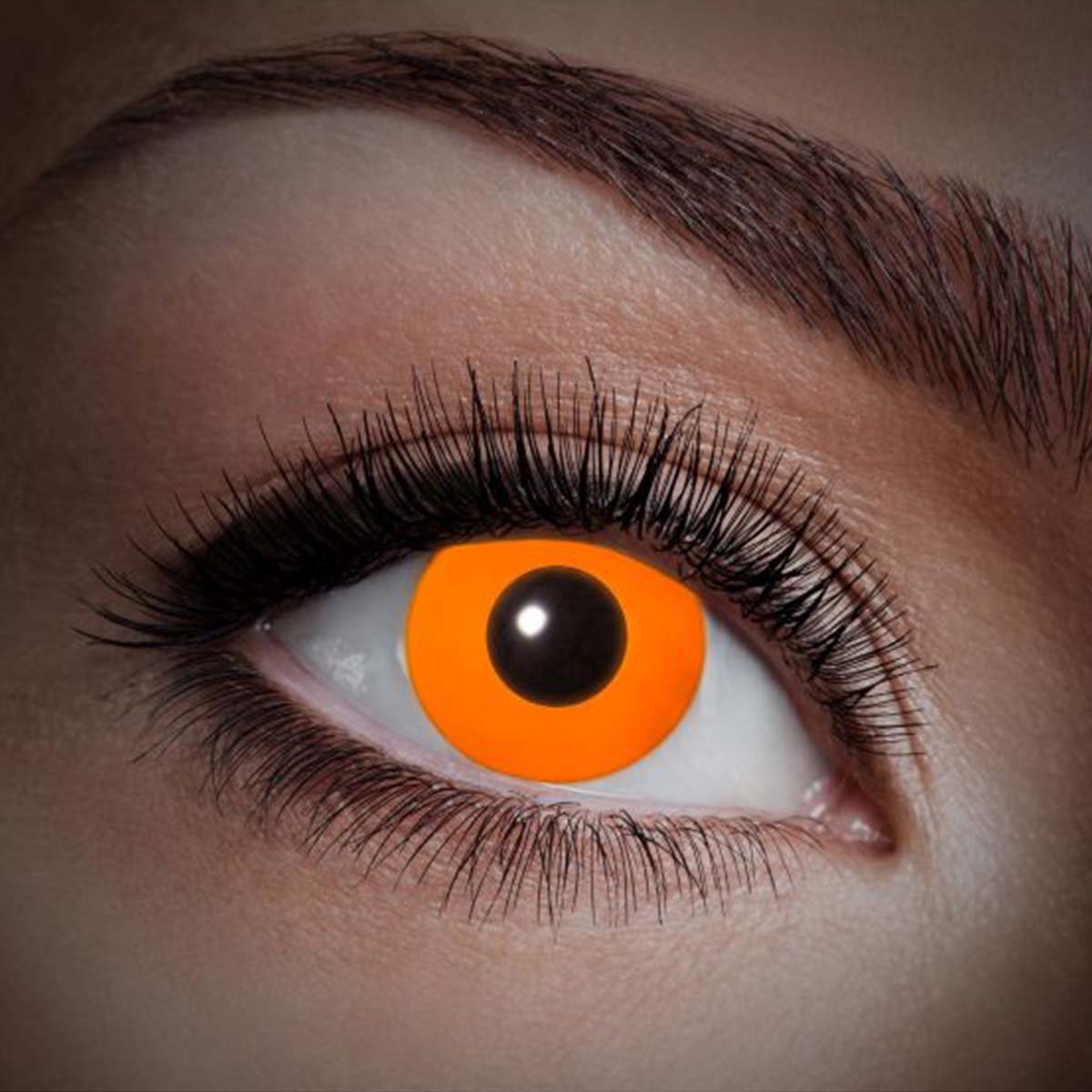 Ta dig till 80-talet eller skapa skräckinjagande ögon med ett par starka färglinser i orange som lyser starkt i UV-ljus. Ska du vara en dinosaurie med skarka ögon eller en läskig clown som får lite extra flash i ögonen när blacklight lampan möter dina ögon så är dessa färglinser perfekt för dig. Ska du på neon & uv-fest är dessa orange neon-linser utmärkta. Komplettera med mer uv-smink i orange eller andra färger för att skapa olika mönster i dagsljus och uv-ljus.