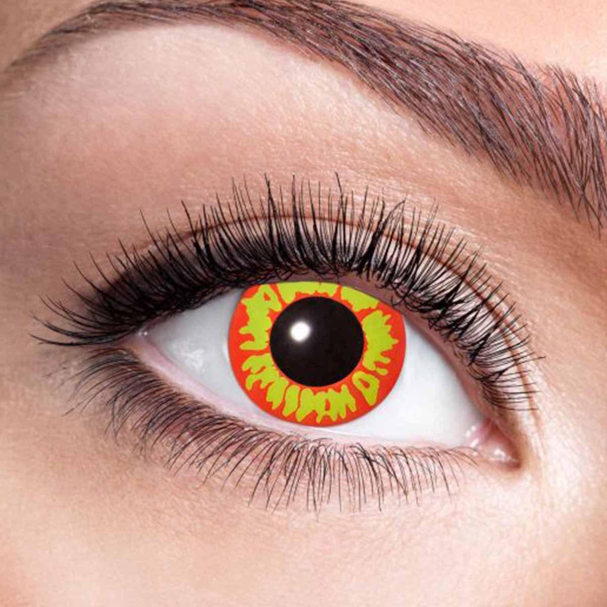 Heltäckande linser med monster orc motiv för din halloweenutklädnad är det perfekta komplementet till din maskeraddräkt och halloween sminkning. Låt den röd/gula färgen av linsen täcka din riktiga ögonfärg. Dessa röd/gula orc linser är vältäckande och skapar en eldig blick på den som bär färglinserna.