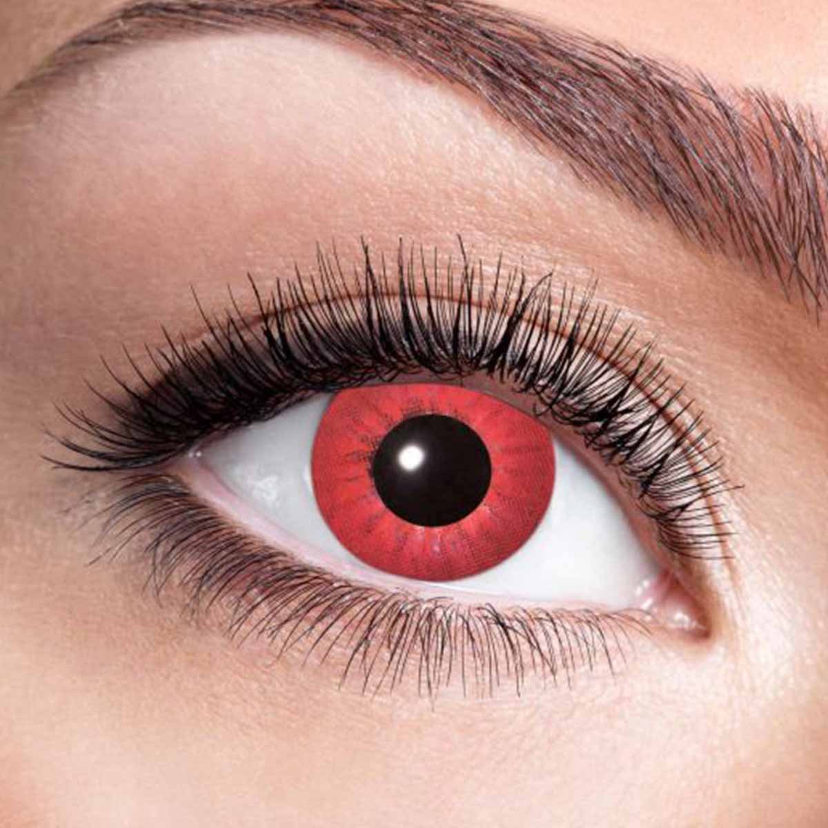Röda heltäckande linser med elektro motiv för din halloweenutklädnad är det perfekta komplementet till din maskeraddräkt och halloween sminkning. Låt den röda färgen av linsen täcka din riktiga ögonfärg. De röda elektrolinserna har ett motiv som påminner om utseendet av ett par riktiga ögon, förutom att de är läskigt röda!