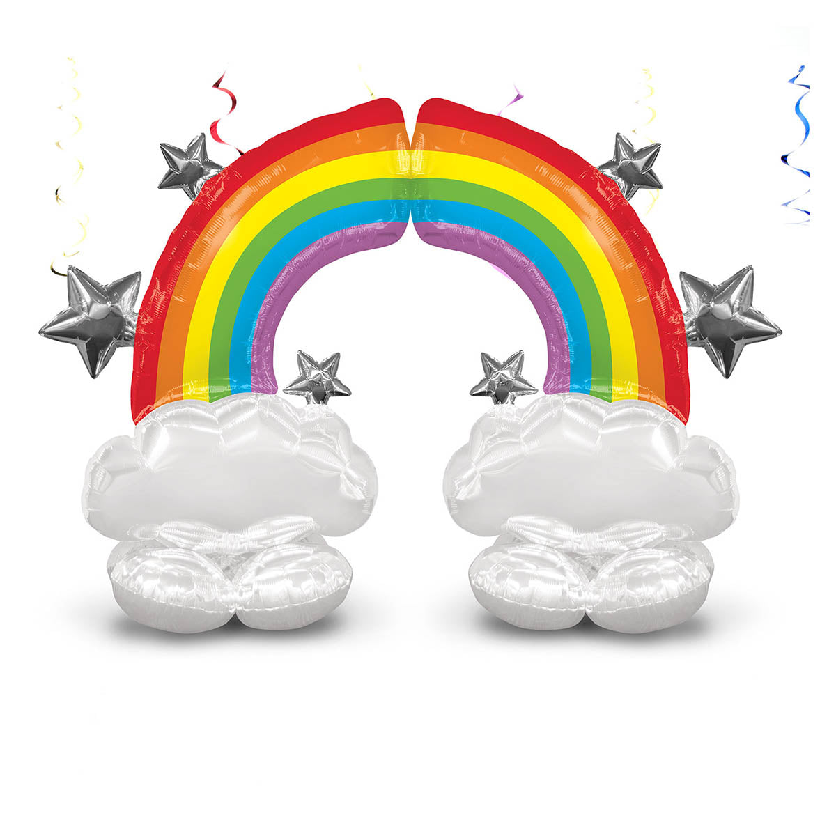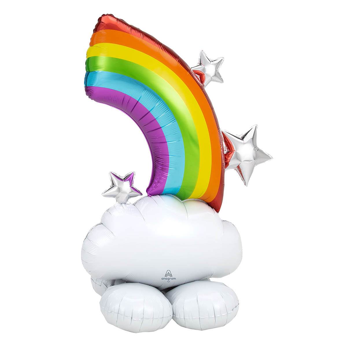 En snygg halv regnbåge som kommer ut från ett moln. Supergullig folieballong som passar på både barnkalas, pridefester och till vardags. Blås upp två av dessa ballonger och du kan sätta ihop dem till en komplett regnbåge ståendes på ett paketbord. Wow så snyggt.