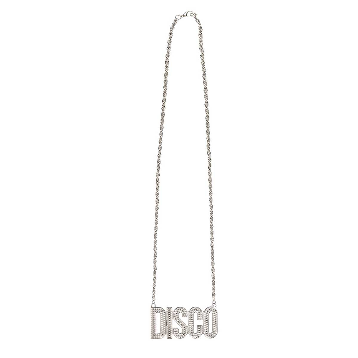 Köp dig ett snyggt halsband med texten disco skrivet i silver, ett måste för den som älskar att skaka lös på dansgolvet till en riktigt bra discodänga. Med ett discohalsband runt halsen är du redo för alla sorters låtar på dansgolvet.