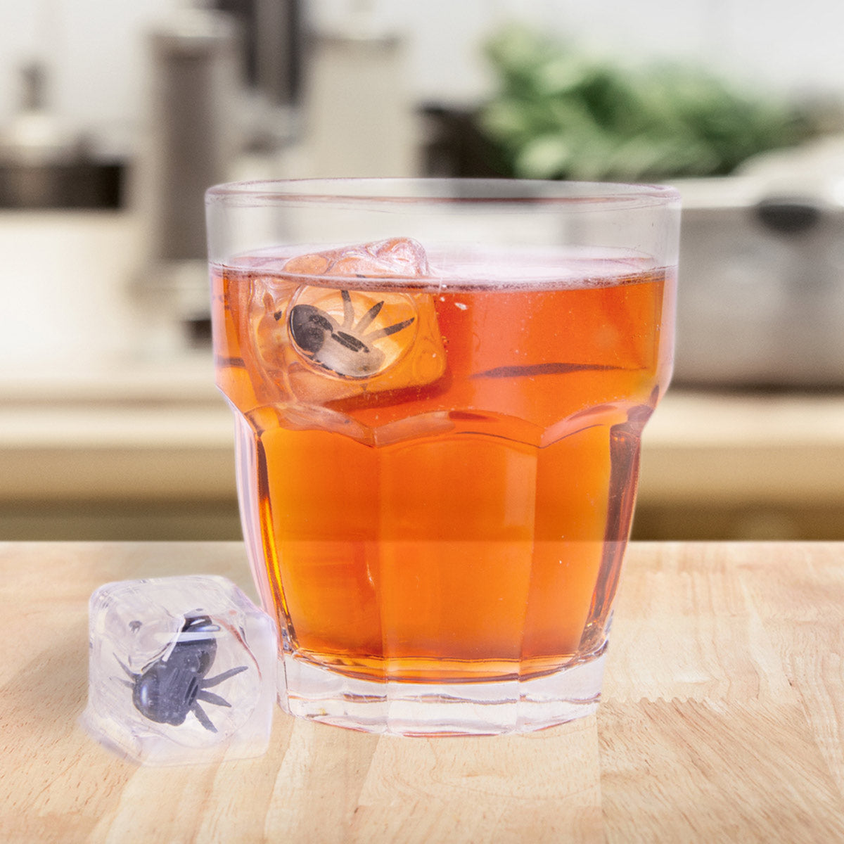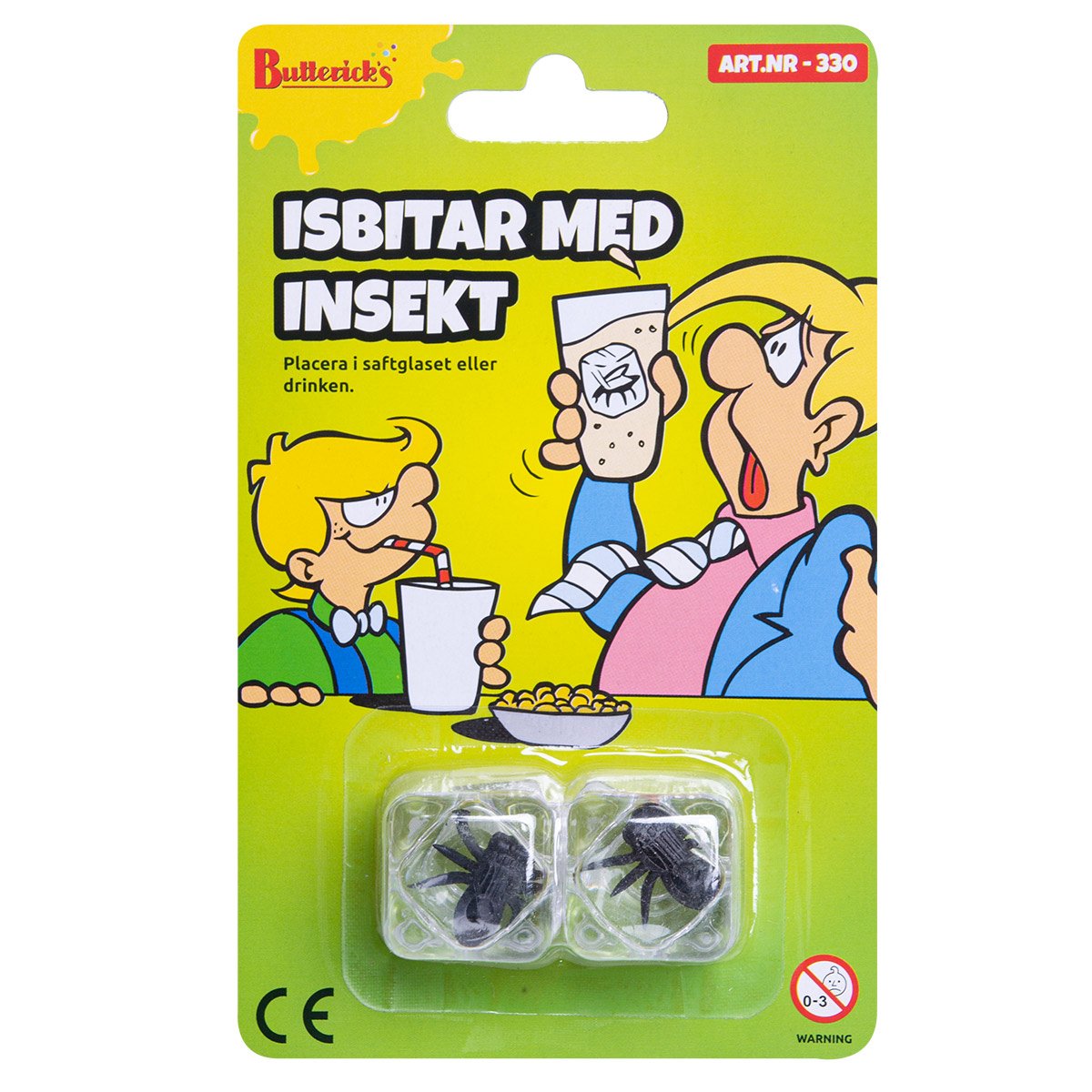 Två härliga isbitar med en fet fluga i varje. Perfekt för att skoja med när du ska servera på en drink eller saftglas till en kompis. Du kan pranka flera vänner samtidigt eller om du vill ge dubbel effekt till en person är upp till dig.