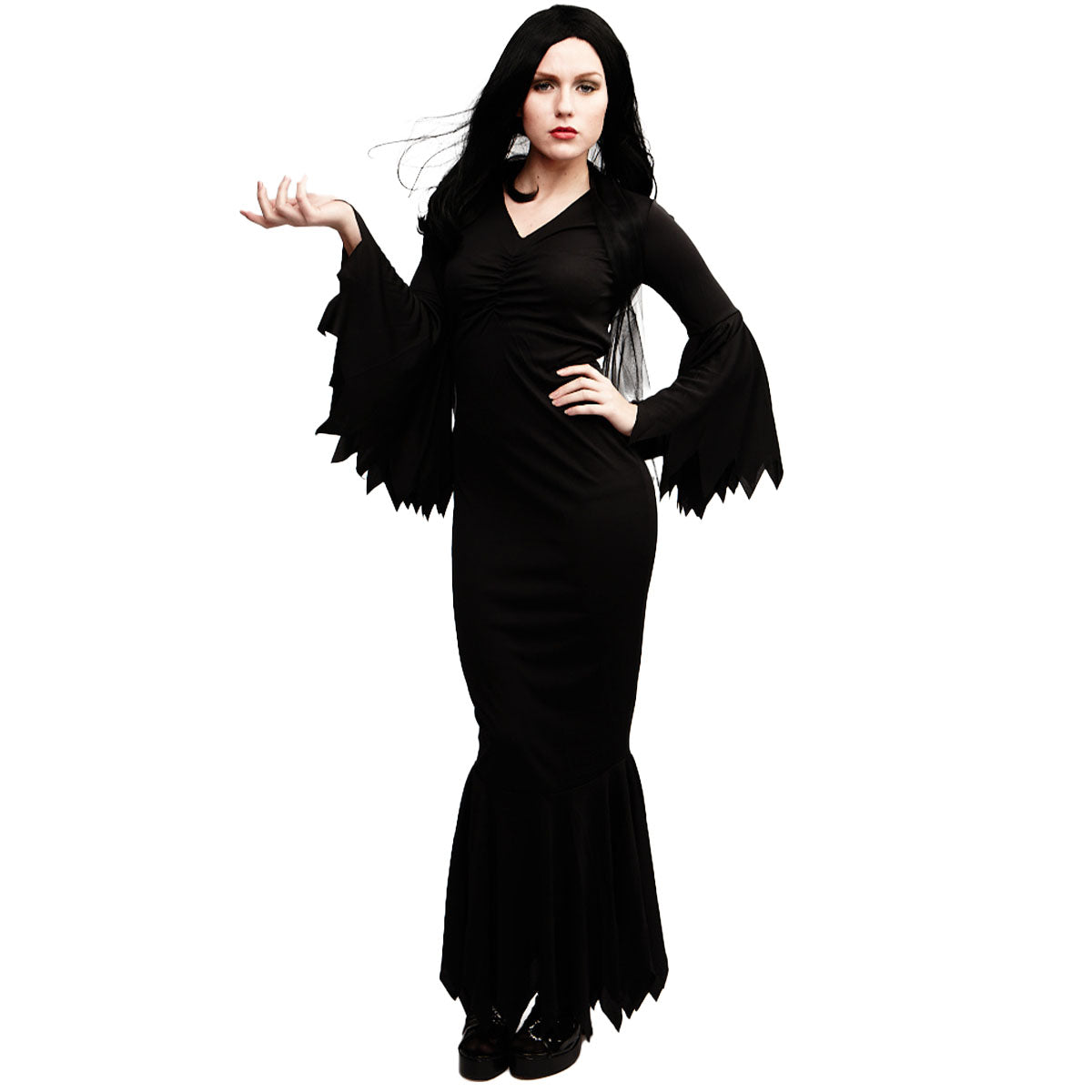En svart klänning som passar alla varianter av vampyrer och klassiska filmkaraktärer. Den elastiska dräkten ser till att du får en tight och fin klänning och tillsammans med ett par huggtänder och lite halloweenblod är du redo att besöka festen.