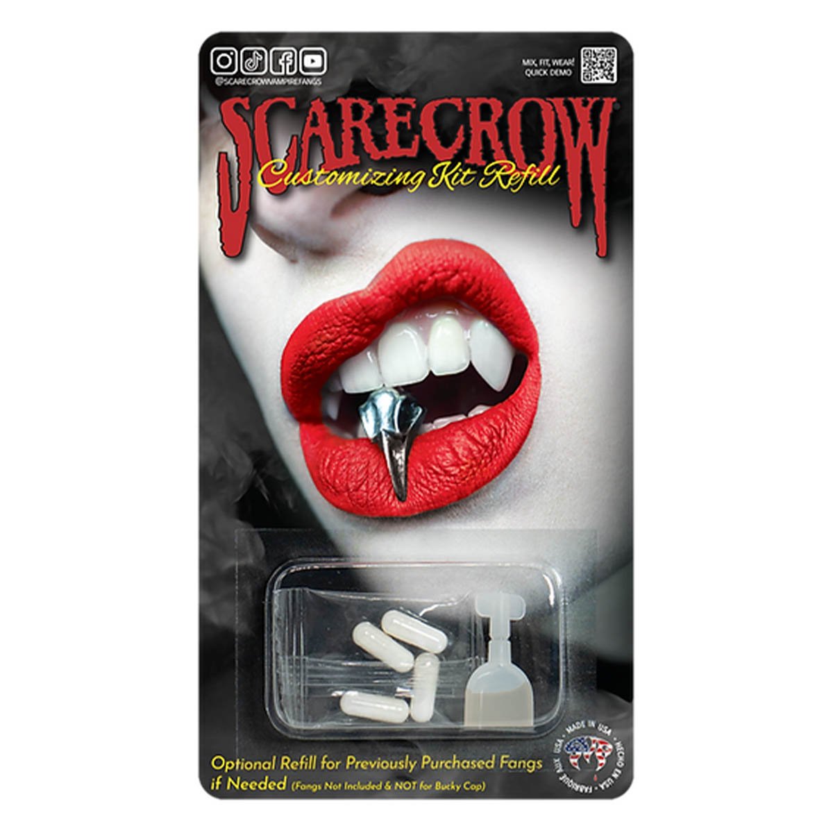 Refill kitet till Scarecrow-tänder innehåller 4 stycken pulver-ampuller samt en liten behållare med vätska.