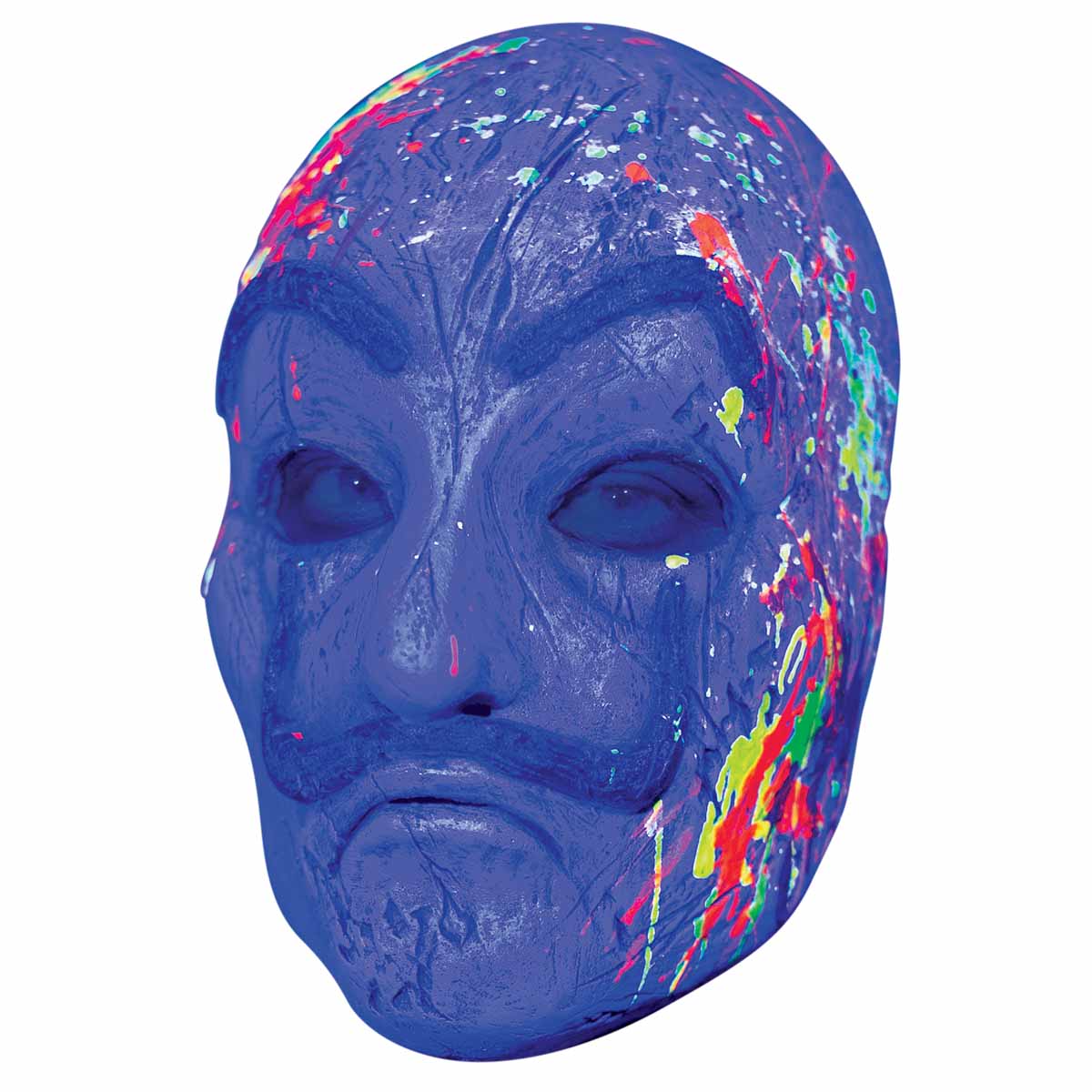 Överraska vännerna på festen med en UV-Mask som överraskar, denna Salvador liknande Ghoulish neon artist mask reagerar i UV-ljus och har färgstänk som lyser starkt i ljuset. Masken är gjord i naturligt latex och är formad på ett sätt som gör att den sitter skönt mot anisktet. Den tjocka kvaliten på masken gör att den tål att festas med.