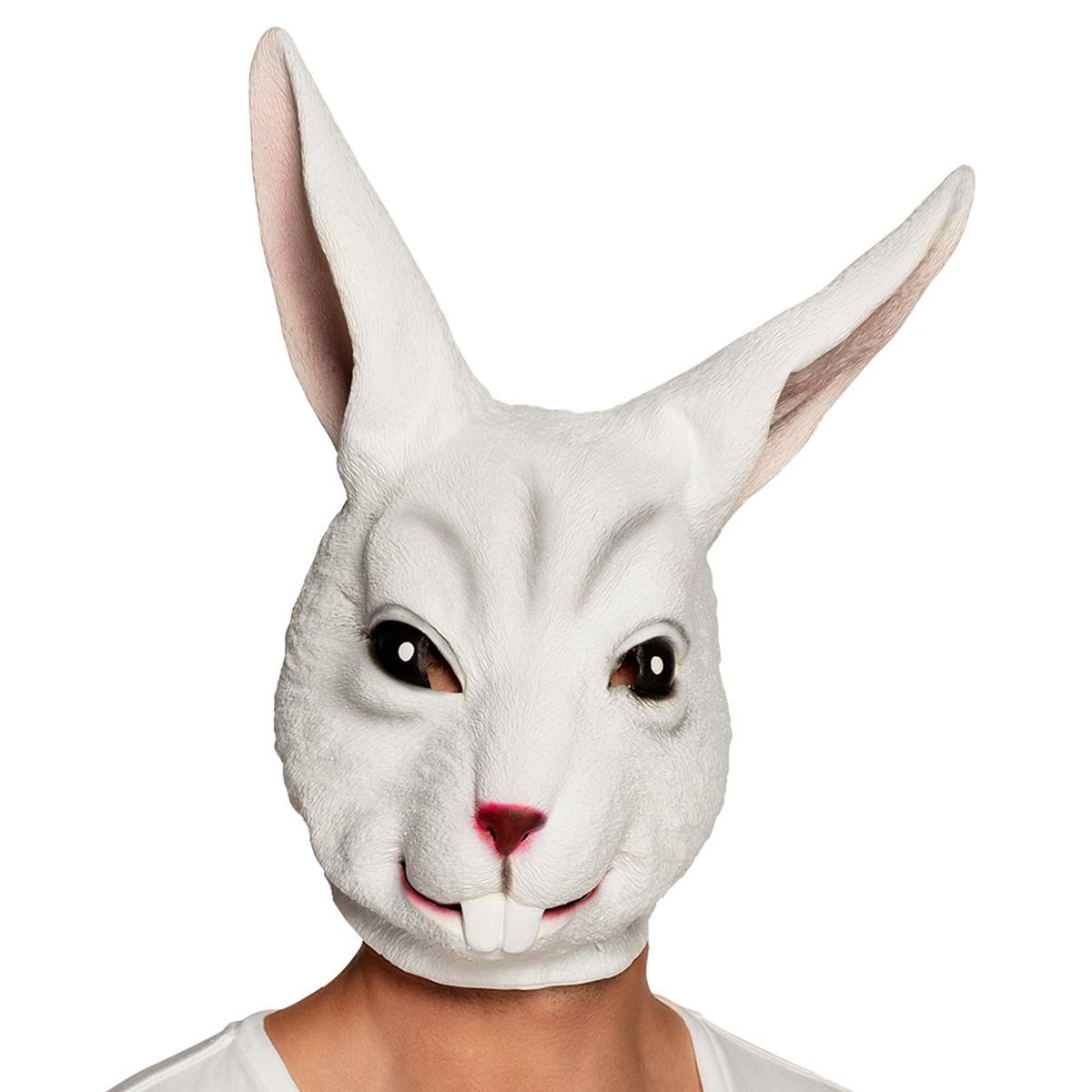 Vill du hoppa runt i trädgården och lägga ut ägg under påsken är denna vita kaninmask precis vad du behöver. Latexmasken som är i vuxenstorlek täcker lätt hela huvudet och med två smidiga titthål kan du se vad du gör.