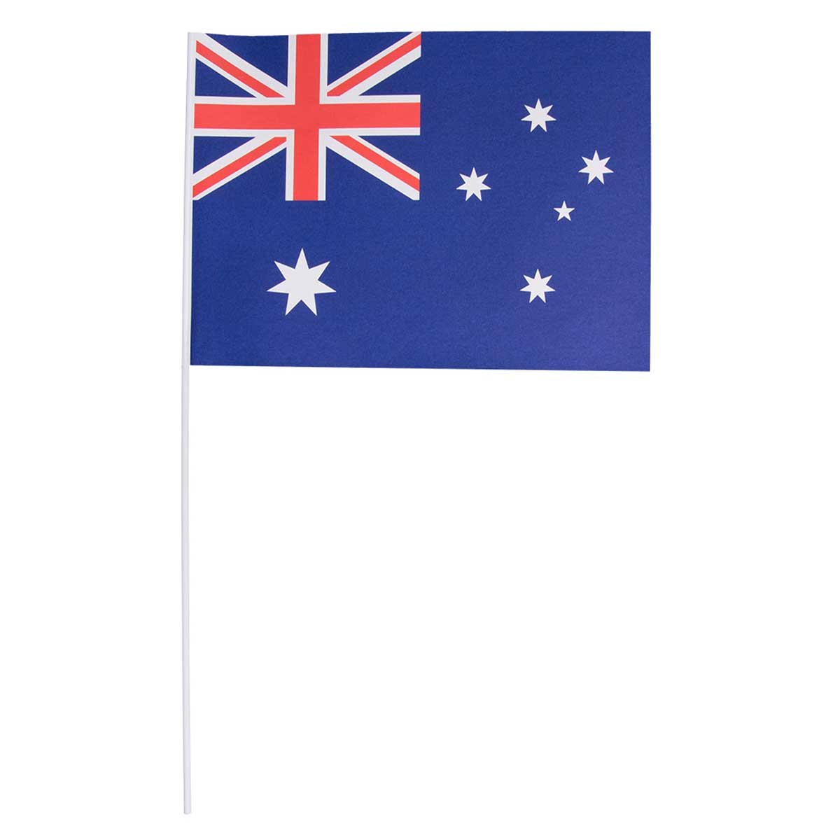 Uppvisa din kärlek till Australien med denna vackra flagga! Tillverkad av högkvalitativt papper och monterad på en bekväm 50 cm plastpinne. Låt Australiens flagga stolt vaja i vinden på din nästa fest eller event.