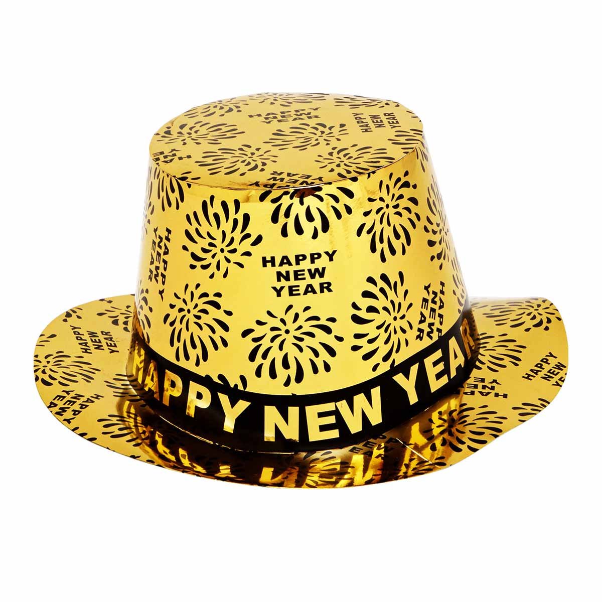 Fira nyår med en snygg happy new year hatt i papp, denna hatten är glansig och fin och ser till att du får massa fina bilder på dig under nyårsafton. Ta härliga nyårsfoton i snygga pappershattar som denna tillsammans med tomtebloss och övriga guldiga detaljer på festen.