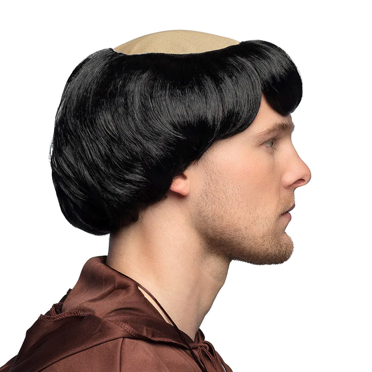 Peruk Munkfrisyr är det självklara valet för dig som vill kliva in i rollen som munk, medeltidsman eller bara dra till med ett riktigt roligt partyuttryck. Denna peruk levererar den klassiska munklooken med glänsande svart hårkrans och strategiskt kal flint mitt på huvudet – även känd i folkmun som "helikopterplattan".