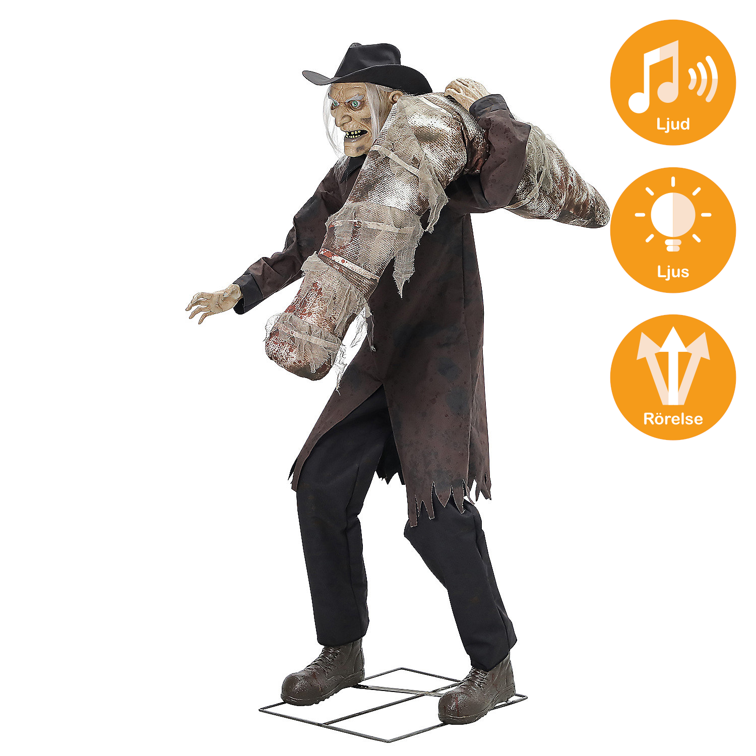 Möt din värsta mardröm när den uppenbarar sig på kyrkogården eller halloweenfesten. Denna 182 cm långa fasa till animerad rekvisita kommer att skrämma även de modigaste av gäster.
