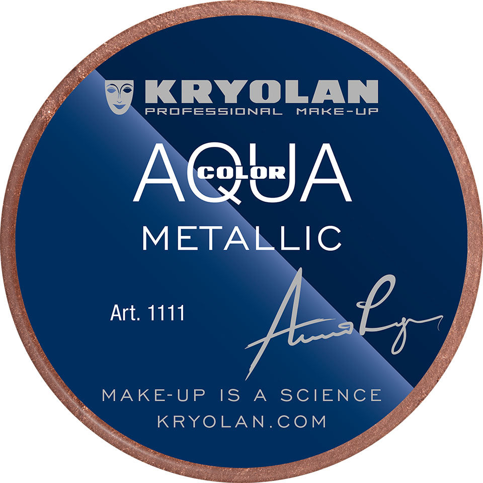 Aquacolor Metallic är en iriserande, glycerinbaserad kompakt make-up framtagen med intensiva metallpigment och pärlemoreffekter som ger en fängslande lyster på både ansikte och kropp. Denna högpigmenterade färg ger ett skimrande metalliskt intryck som passar perfekt för allt från scen- och teatermakeup till kreativa looker för fest och maskerad.