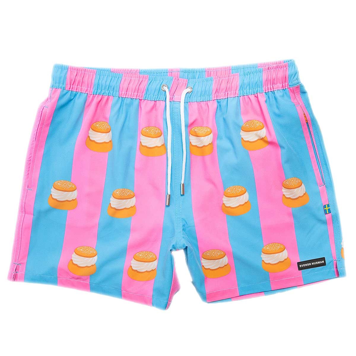 Låt sommaren bli ännu mer färgglad och läcker med dessa fantastiska badbyxor från Svensk Husman! Dessa badshorts i rosa och ljusblått med söta semlor är inte bara snygga utan också perfekta för att ta din strandstil till en ny nivå.