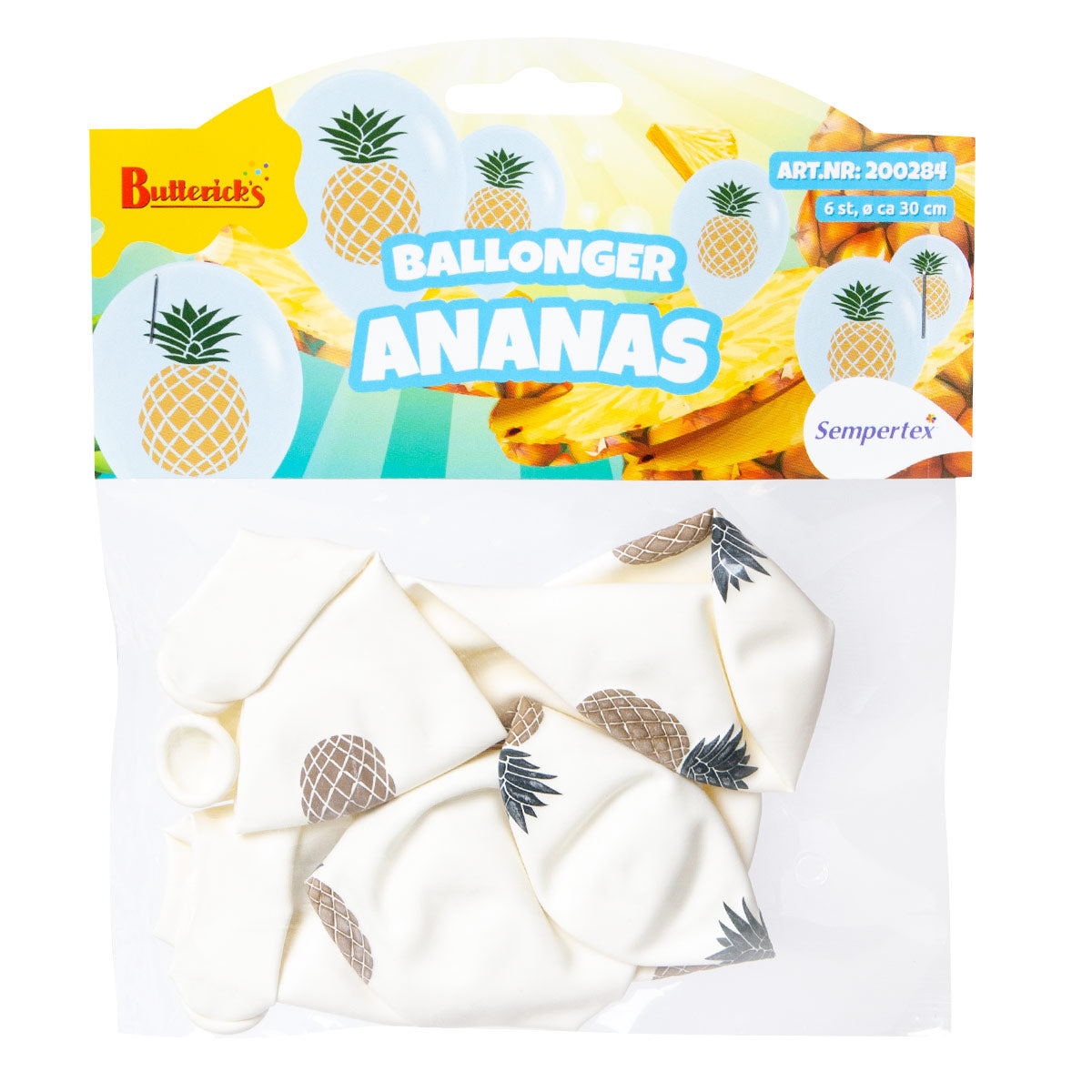 Det finns alltid en anledning till att ha en temafest med ananaser! Frukten ananas kan förknippas med värme, sommar och tropisk feeling, och vem älskar inte det? Smycka temafesten eller barnkalaset med dessa ananas-ballonger. Fäst på ballongpinne, i ett fint ballongband eller fyll med heliumgas och ställ på passande plats med hjälp av en ballongvikt.