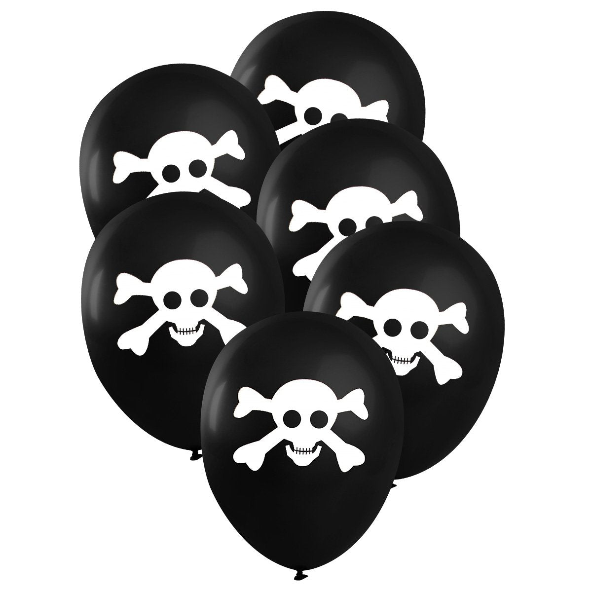 Varje förpackning innehåller 6 st latexballonger i svart färg med vit dödskalle.