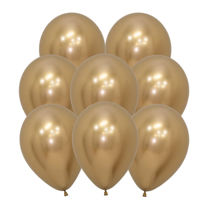 Dags för fest? Köp hem dessa latexballonger i reflexerande guld. Ballongerna levereras om 10-pack. Använd alltid en ballongpump för att blåsa upp dina ballonger!