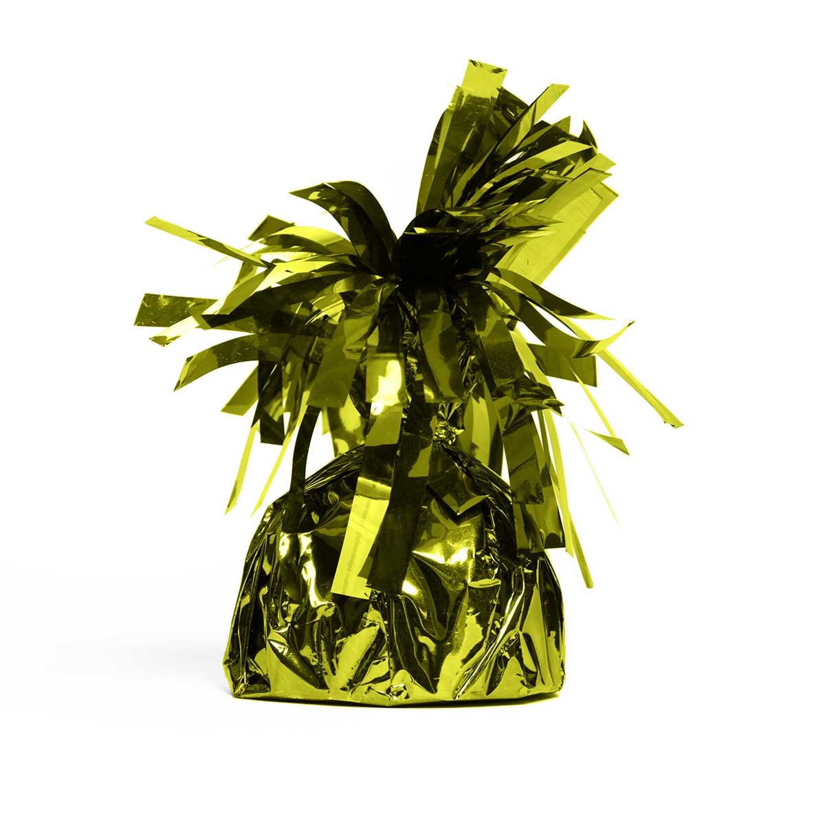 Ge dina festballonger ett elegant och praktiskt fäste med denna ljusgröna ballongvikt i en fräsch limefärg. Den fransiga folien ger en festlig touch, medan den robusta vikten på 170 gram säkerställer att dina ballonger stannar precis där du vill ha dem.