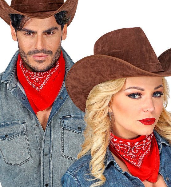 Denna klassiska röda bandana är dekorerad med ett vitt, detaljerat paisleymönster som ger ett uttrycksfullt och tidlöst utseende. Det mjuka och lätta tyget gör den bekväm att bära och enkel att forma på olika sätt. Använd den som håraccessoar, runt halsen, på handleden eller som en stilfull detalj på väskan. Perfekt accessoar till cowboyfesten.