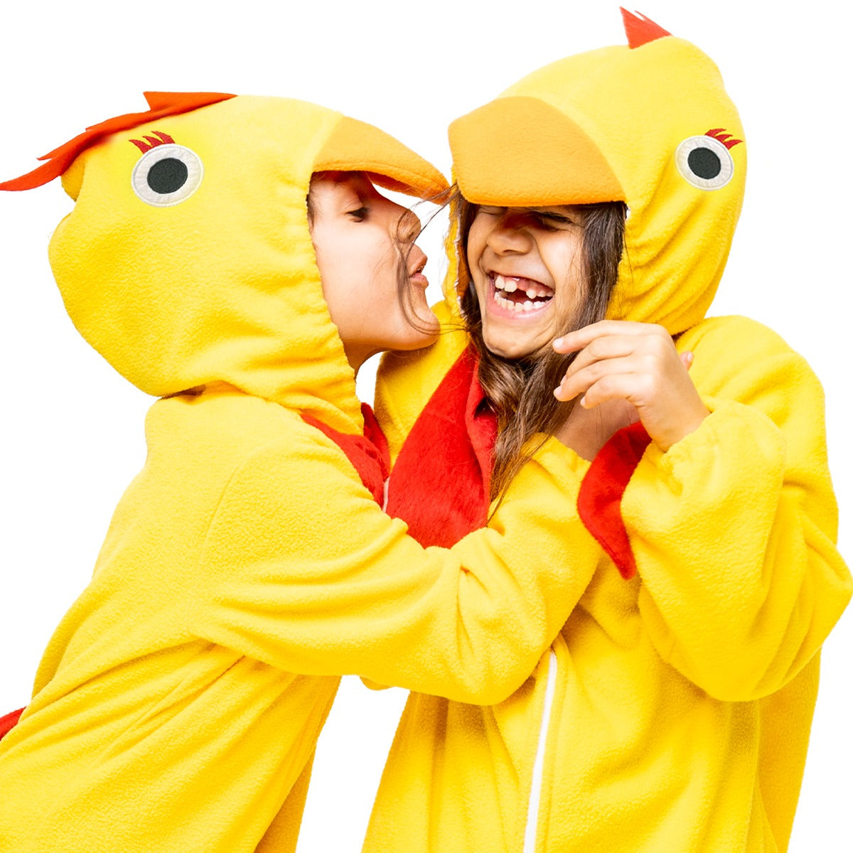En söt och mysig kycklingdräkt för barn som passar perfekt till påsk, maskerad eller fotografering. Den gula overallen har huva med liten näbb och detaljer som ger en extra charmig kycklinglook.