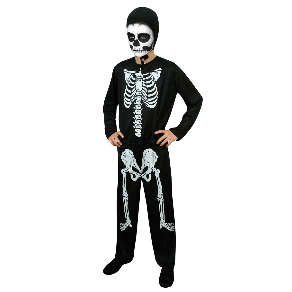 Svart jumpsuit med tryck av skelett som passar alla barn mellan 110 cl till 116 cl, är du mellan 4-6 år är detta halloweendräkten för dig.