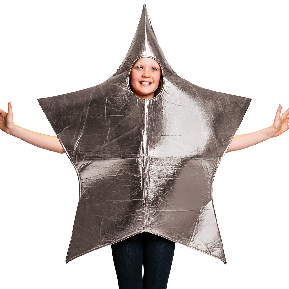 Med denna silvriga fina stjärndräkt kan du vara en riktig stjärngosse i luciatåget eller ta skolpjäsen till nya nivåer. Dräkten är formad som en silvrig stjärna med hål för ansiktet så du kan glänsa ordentligt som en stjärna.