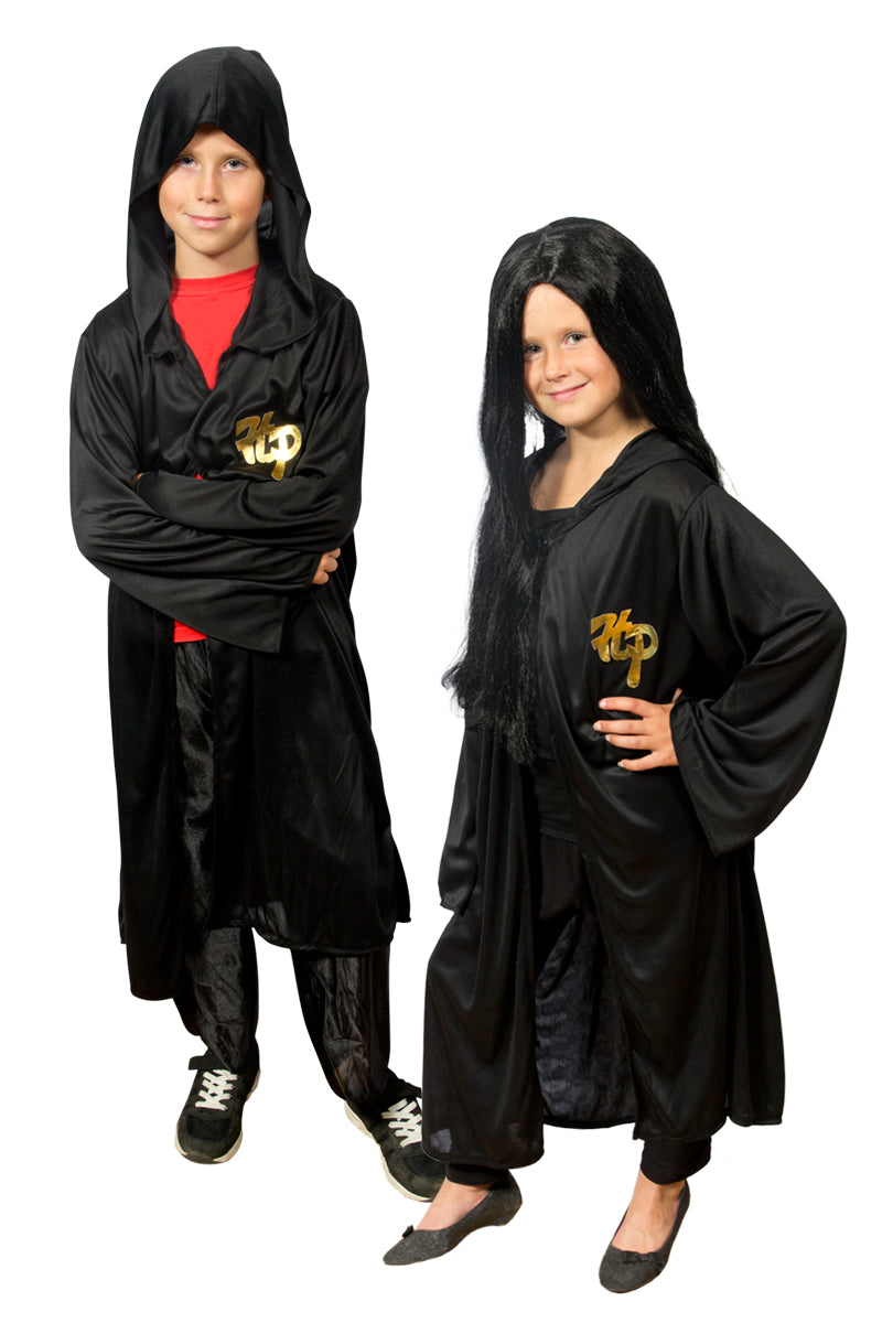 En svart klassisk trollkarlskappa för den lilla trollkarlen.