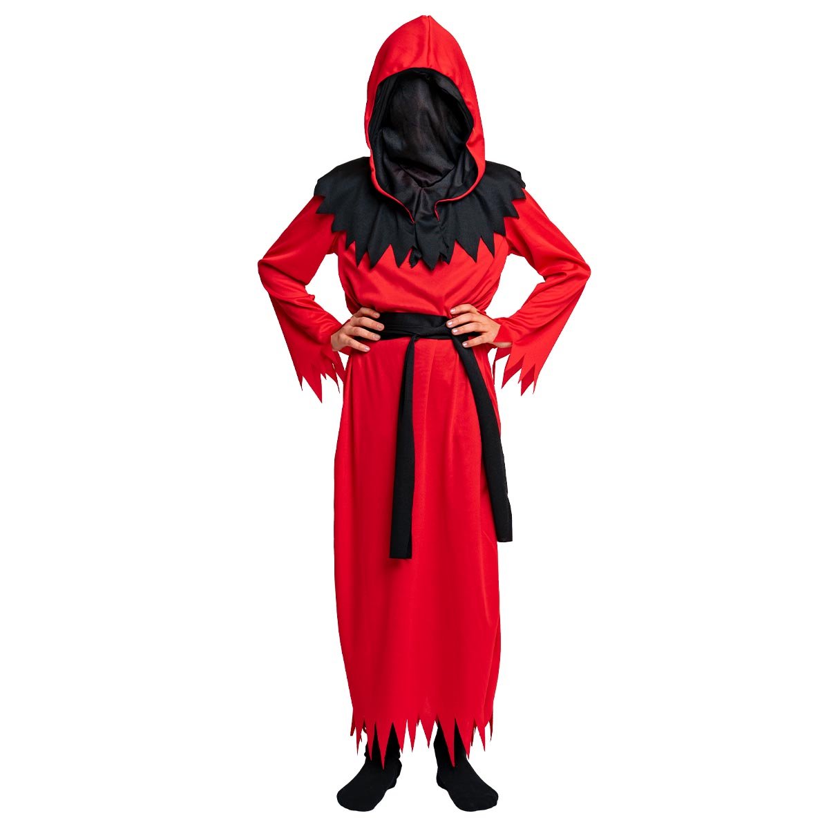 Klä ut dig till en rödklädd vålnad i halloweenmörkret. Denna röda läskiga djävulskåpa är perfekt för den som vill vandra runt och sätta skräck i grannskapet under halloween. Den röda vålnad dräkten har en huva man kan ta över huvudet och man får med ett litet svart bälte att knyta runt midjan. Köp till en djävulsgaffel, lie eller annat halloweenvapen och du är redo för maskeradfesten.