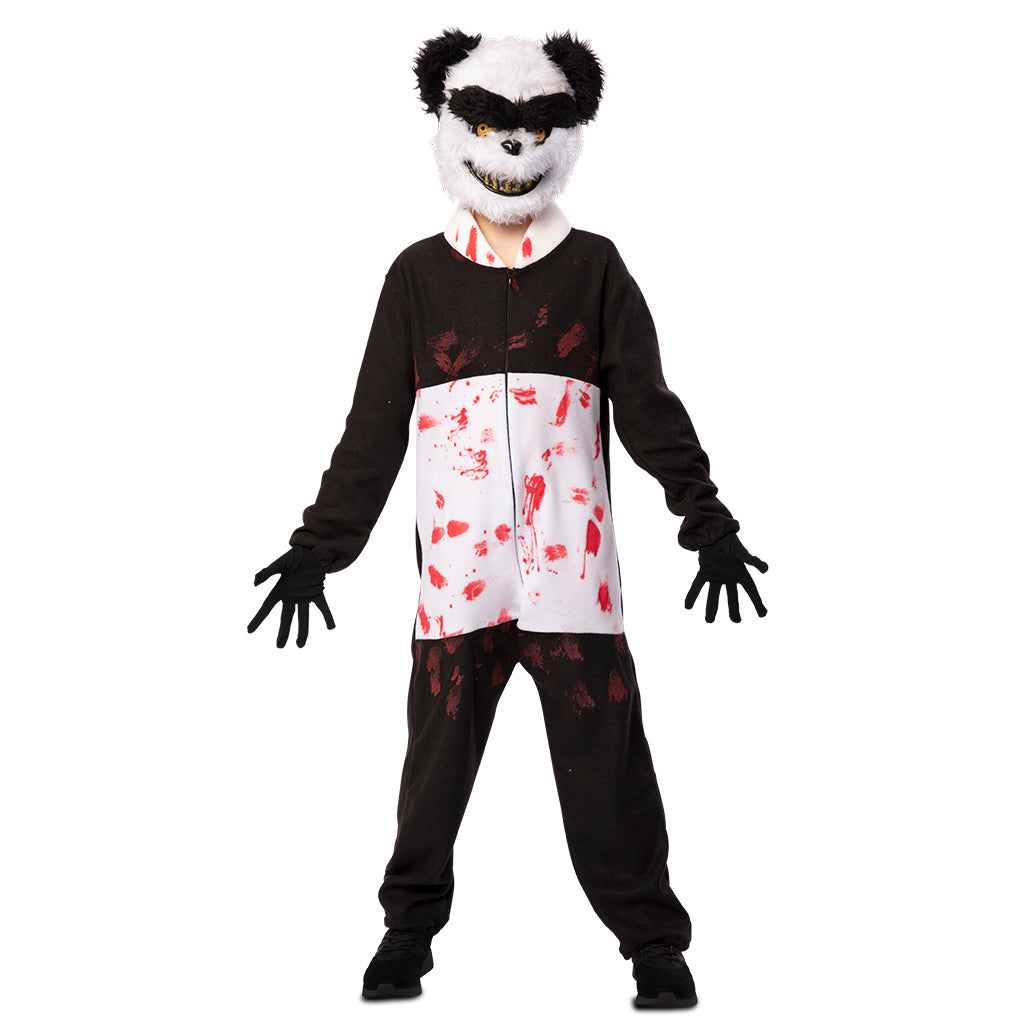Gör dig redo för skräckinjagande kramar med denna blodiga zombiepanda-dräkt för barn!