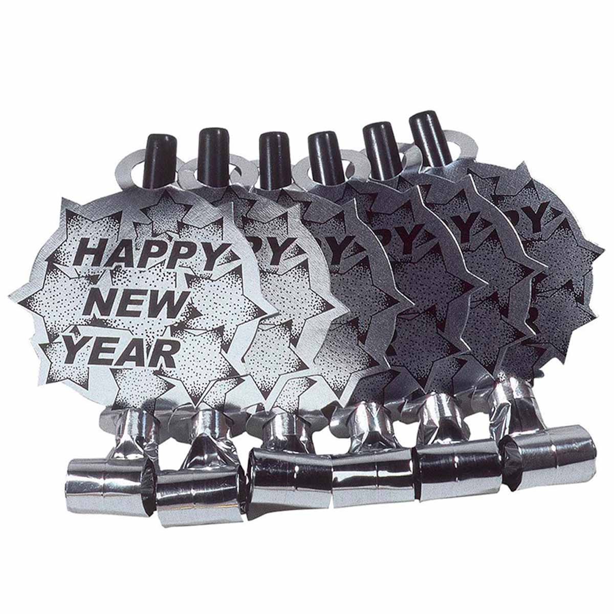 Blåsormar är en kul och populär nyårstradition som inte bara är för barn. Dessa blåsormar är i elegant silver och pryds med orden "Happy New Year". De är perfekta för att skapa stämning på din nyårsfest och för att fira in det nya året med stil. Blås i dem när tolvslaget närmar sig och låt ljudet av tutande ormar fylla rummet.