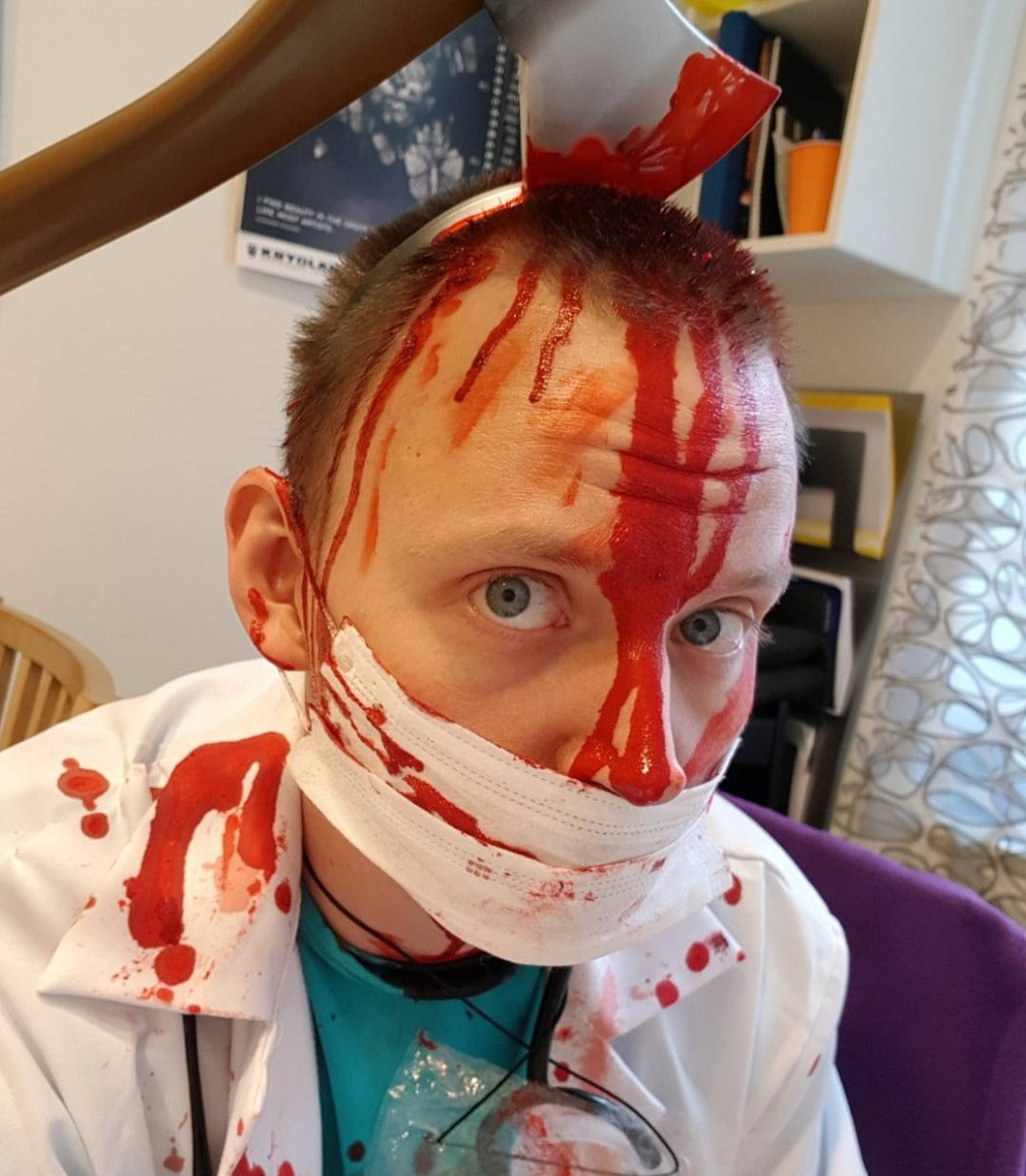 Realistiskt blod som är flytande, men som torkar efter en stund. Blodet går lätt att få bort från huden med tvål och vatten.