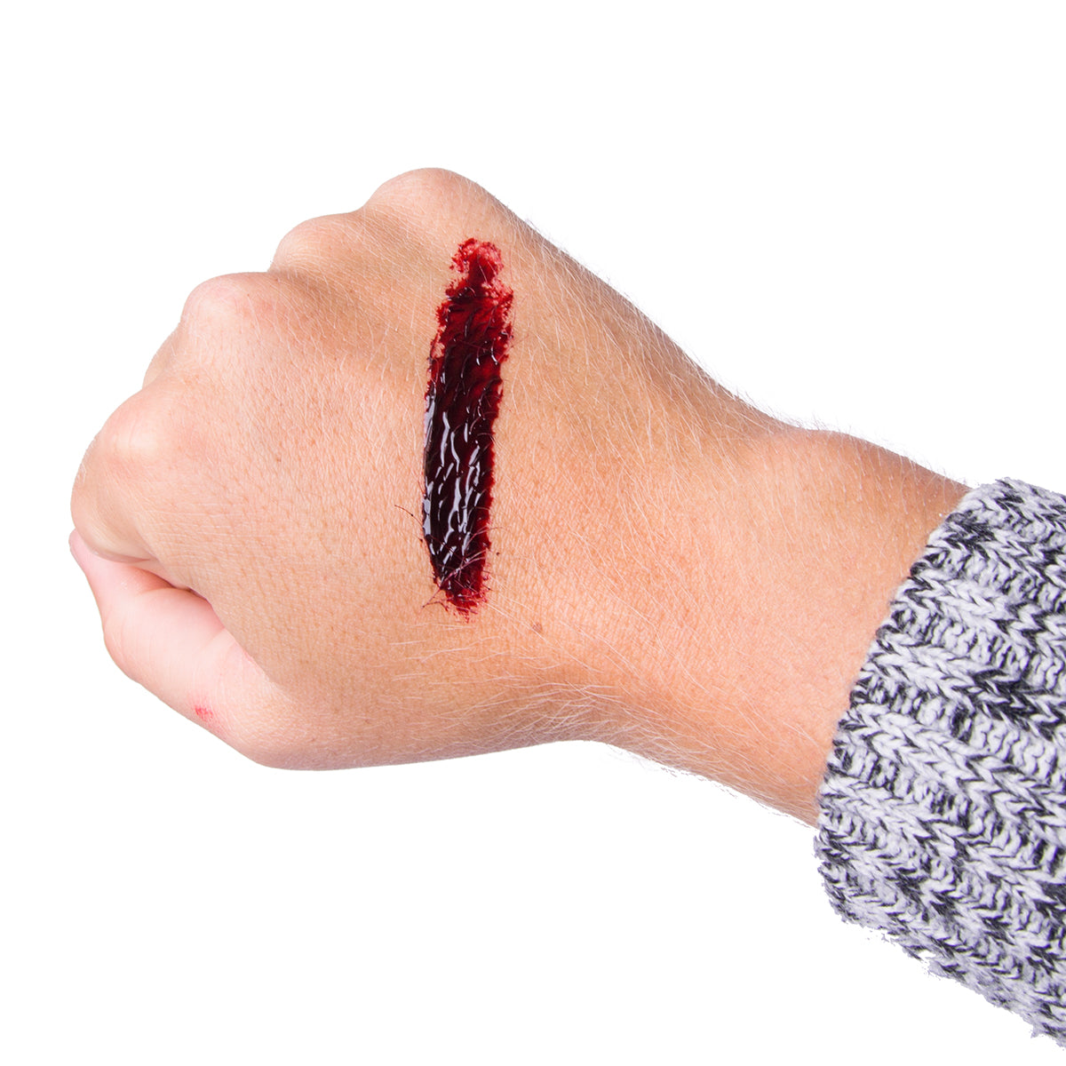 Trögflytande "blod" som är perfekt att använda till egna verklighetstrogna sår.