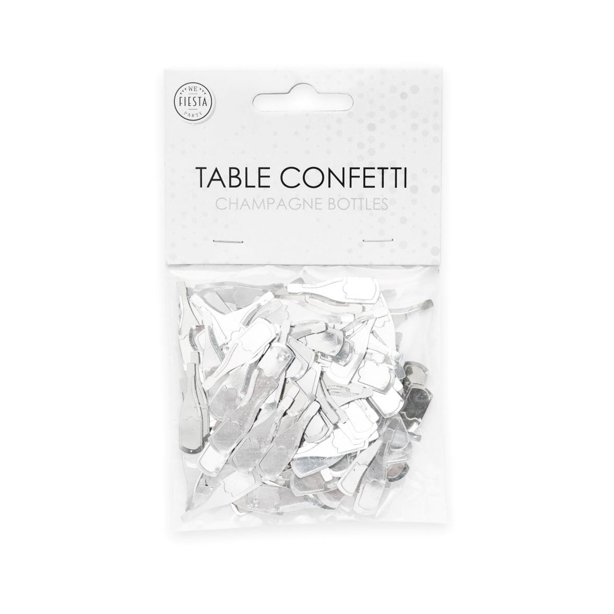 Låt det glittra och skimra på festbordet med denna eleganta bordskonfetti i form av champagneflaskor! Perfekt för att höja stämningen på födelsedagar, studentfiranden, nyår och stora bröllop. De silverfärgade konfettibitarna reflekterar ljuset vackert och skapar en exklusiv känsla som gör varje dukning festligare.