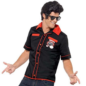 En bowlingskjorta direkt från 50-talet med ”Strike It Lucky”-motiv på fram- och baksida. En mer perfekt outfit för 50-talsfesten får du leta efter! På med skjortan hitta ett par mörka jeans och greppa bowlingklotet. Skjortan finns i M och L.