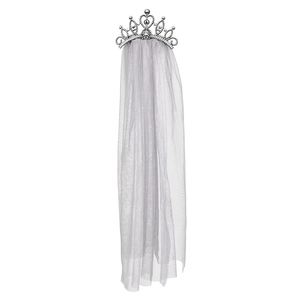 Denna skrämmande zombiebrud-tiara med slöja ger din outfit en kuslig och elegant twist! Med en vacker tiara på toppen och en genomskinlig slöja som faller ner över ansiktet, ser du ut som en dödlig prinsessa. Perfekt för Halloween, spökhus eller temafester där du vill skapa en skrämmande, men ändå graciös look. Denna accessoar ger din zombiebrudkostym den perfekta, dödsbringande detaljen.