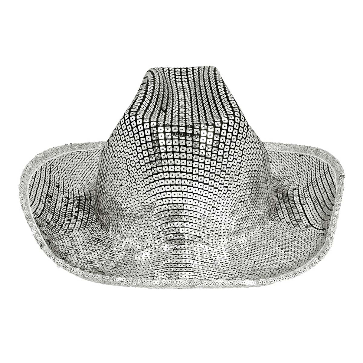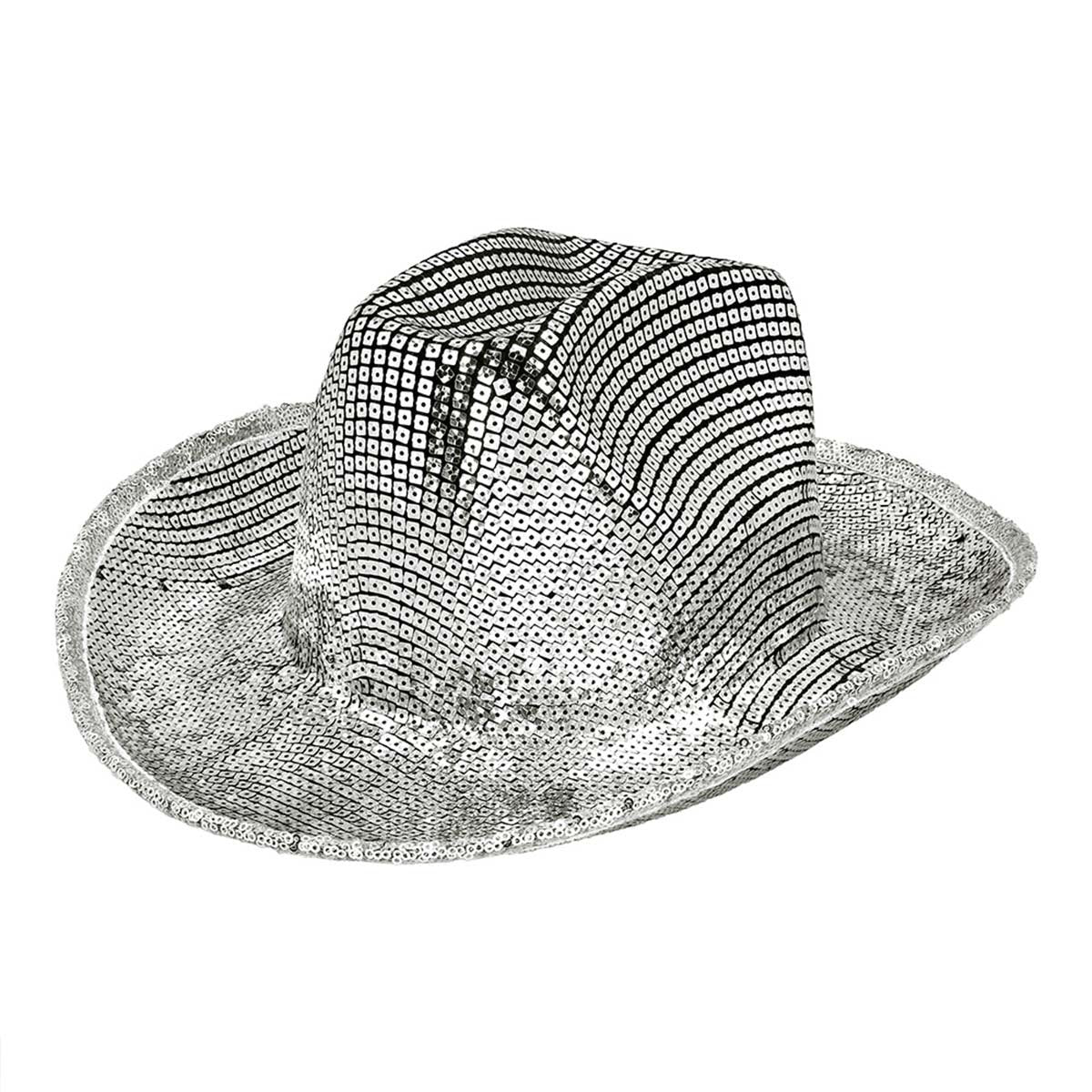 Sätt en futuristisk touch på din cowboylook med denna groovy cowboyhatt i silver! Med sitt glänsande fyrkantiga paljettmönster och breda brätte får du en perfekt mix av vilda västern och discokula. Oavsett om du ska på maskerad, schlagerfest, festival eller bara vill blända alla på dansgolvet, så är det här hatten för dig.