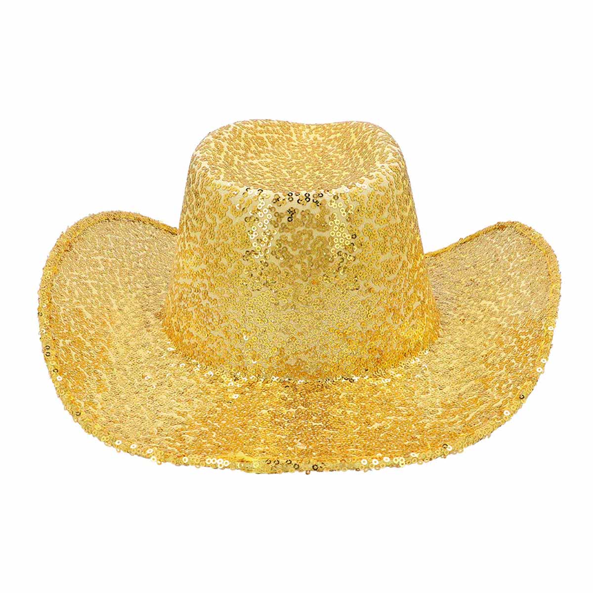 Tillverkad i lätt och bekvämt material, sitter hatten skönt på huvudet hela kvällen. Den klassiska cowboyformen ger en autentisk westernstil, medan de glänsande paljetterna adderar en modern och festlig twist. Kombinera den med en gulddetaljerad outfit för en komplett look, eller låt hatten vara huvudnumret i din outfit.