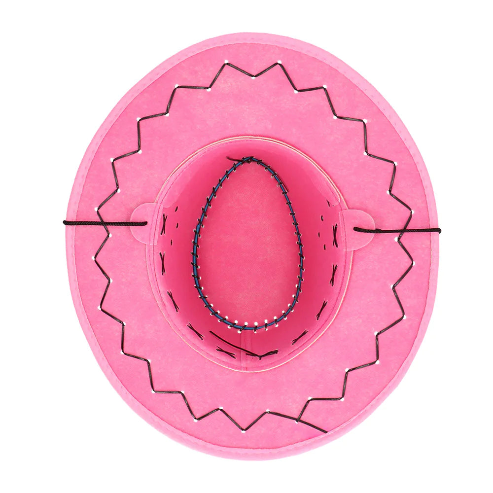 Ge din outfit en cool och stilfull twist med denna rosa cowboyhatt! Perfekt för en western-temafest, möhippa eller karneval. Med dekorativa detaljer och ett justerbart snöre kommer du att glänsa med både stil och komfort hela kvällen.