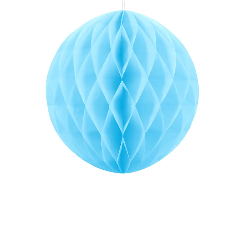 Ge festen ett mjukt och stilrent lyft med denna dekorativa boll i ljusblått! Den veckade pappersdesignen skapar ett härligt voluminöst uttryck och passar perfekt att hänga i taket, i fönstret eller som del av en festlig backdrop.