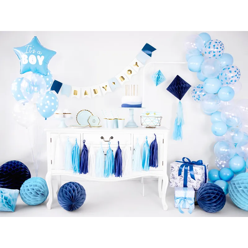 Ge festen ett mjukt och stilrent lyft med denna dekorativa boll i ljusblått! Den veckade pappersdesignen skapar ett härligt voluminöst uttryck och passar perfekt att hänga i taket, i fönstret eller som del av en festlig backdrop.