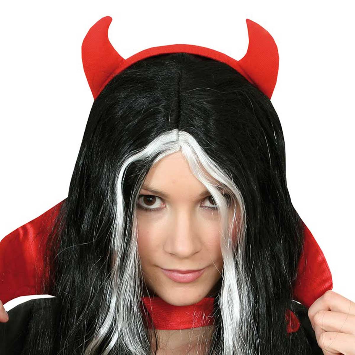 Röda djävulshorn på diadem.