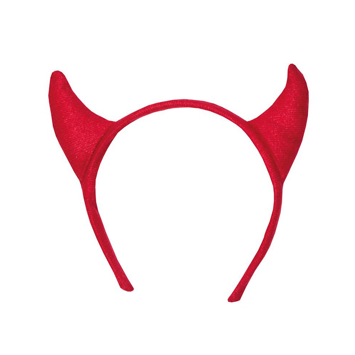 Röda djävulshorn på diadem i mjukt tyg som gör dig till djävulen på bara några sekunder, det tygklädda diademet är skönt på huvudet och du kommer inte ens tänka på att du går runt med djävulshornen på huvudet under halloween.