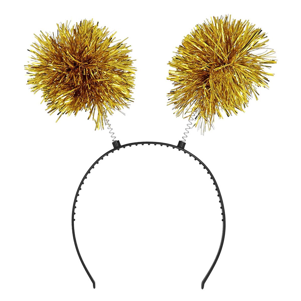 Lägg till en touch av glans och glamour med detta glittriga diadem med guldiga pompom-bollar! Perfekt för nyårsfirande, julfester, discoevenemang eller alla tillfällen där lite extra glitter är ett måste. De studsande bollarna på spiralfjädrar ger en lekfull och festlig känsla, vilket gör detta diadem till en favorit för både vuxna och tonåringar.
