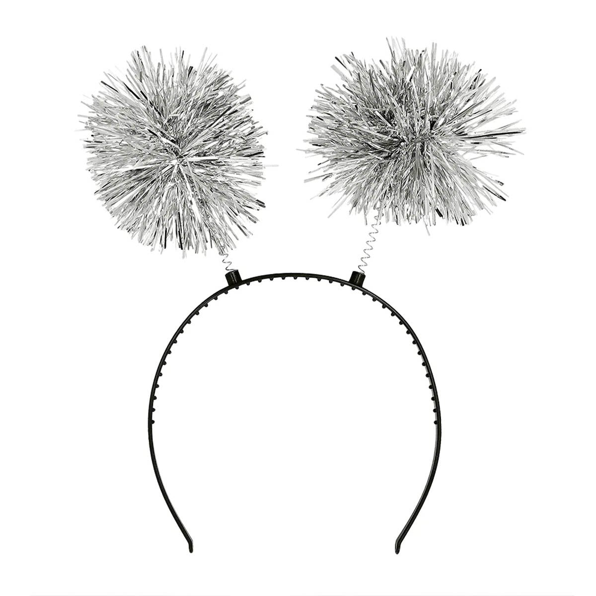Glittra och glimma på festen med detta diadem med silverfärgade pompom-bollar! De studsande bollarna på spiralfjädrar ger en lekfull och festlig touch till din outfit, oavsett om du ska på nyårsfirande, en discofest eller en annan glittrig tillställning.