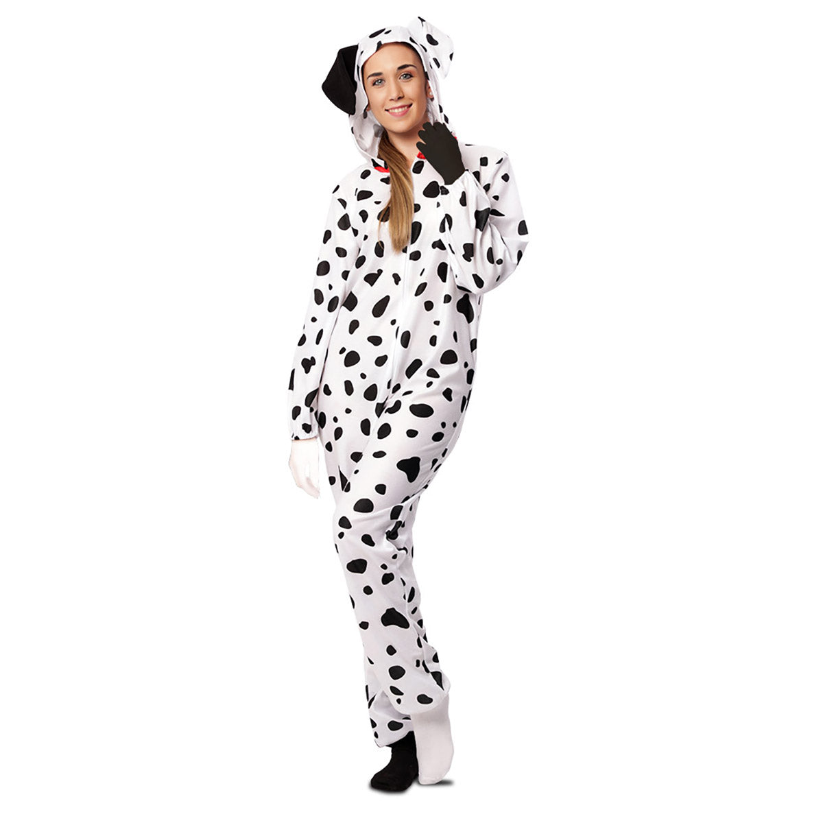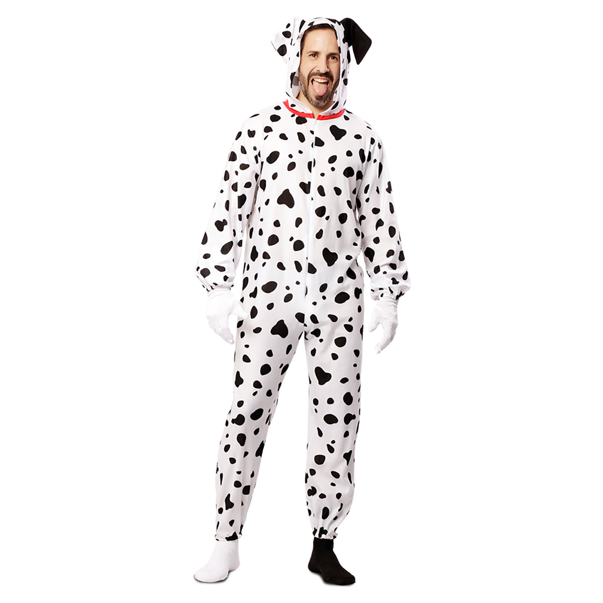 Om du alltid har drömt om att vara en av de där 101 – här är chansen! Den här dalmatindräkten i storlek M/L är mjuk, rolig och extremt svår att motstå. Med sina klassiska svartvita prickar, söta hängande öron på luvan och detaljer som kontrastfärgade tassar och "svanskänsla" baktill blir du direkt festens sötaste hundvalp.