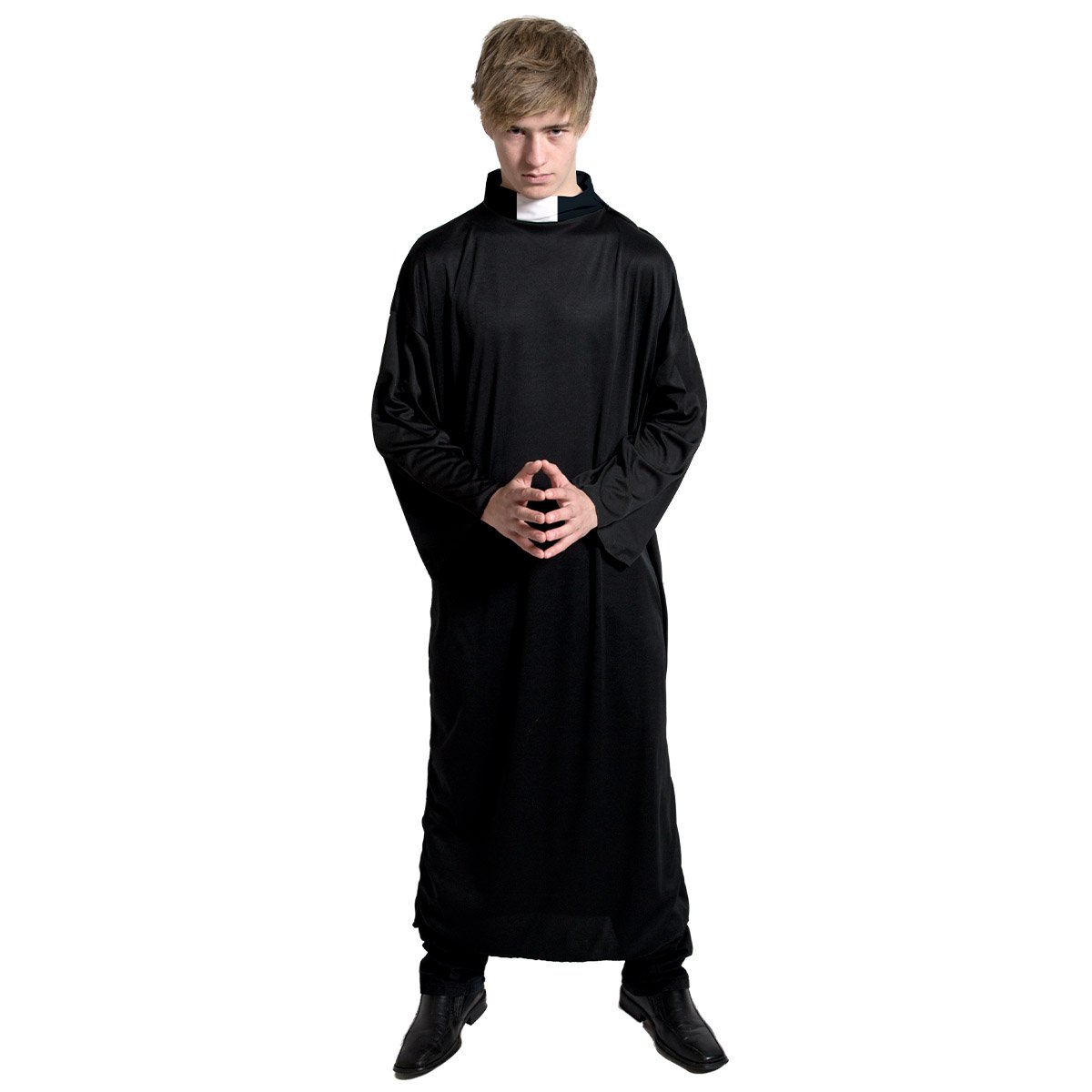 Herre i Jesus kristus namn kallar vi till dig, att festa! Denna svarta prästdräkt kan man både viga och bjuda på "nattvarden" på festen. En stor klassiker under halloween som aldrig går ur tiden.