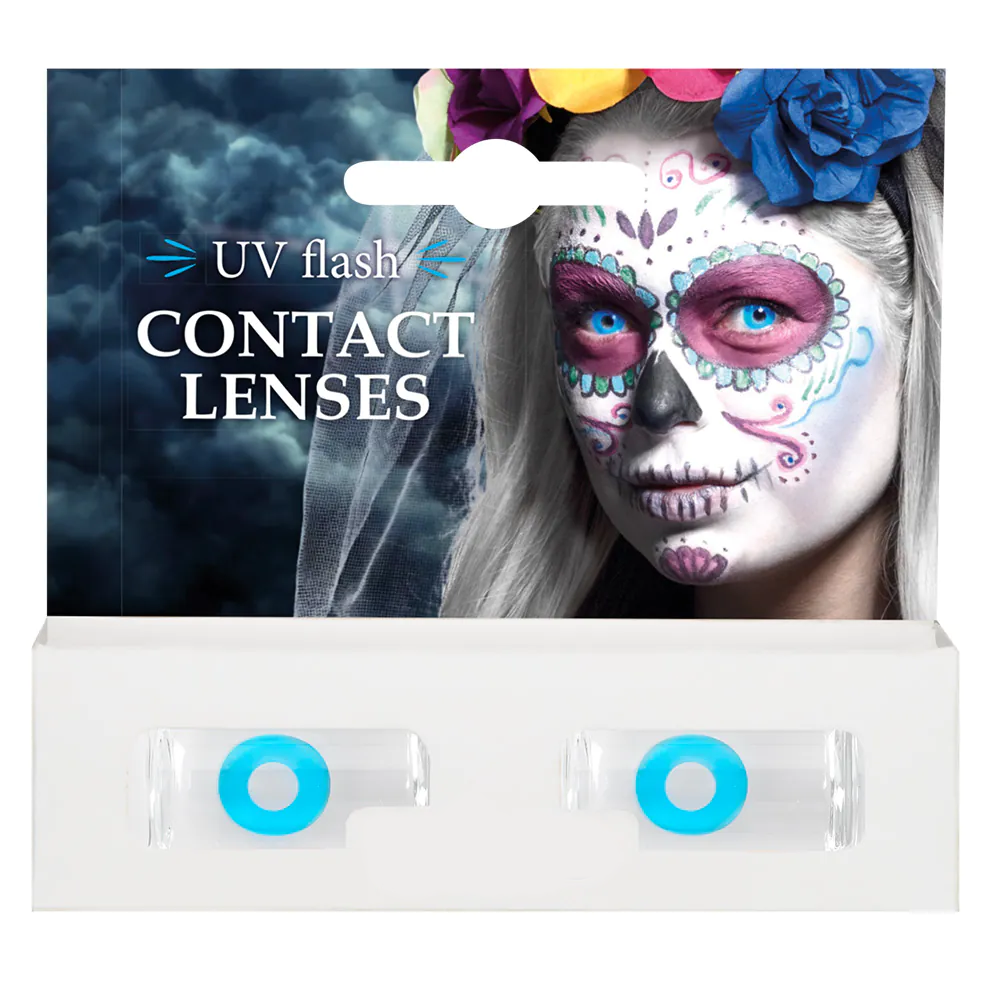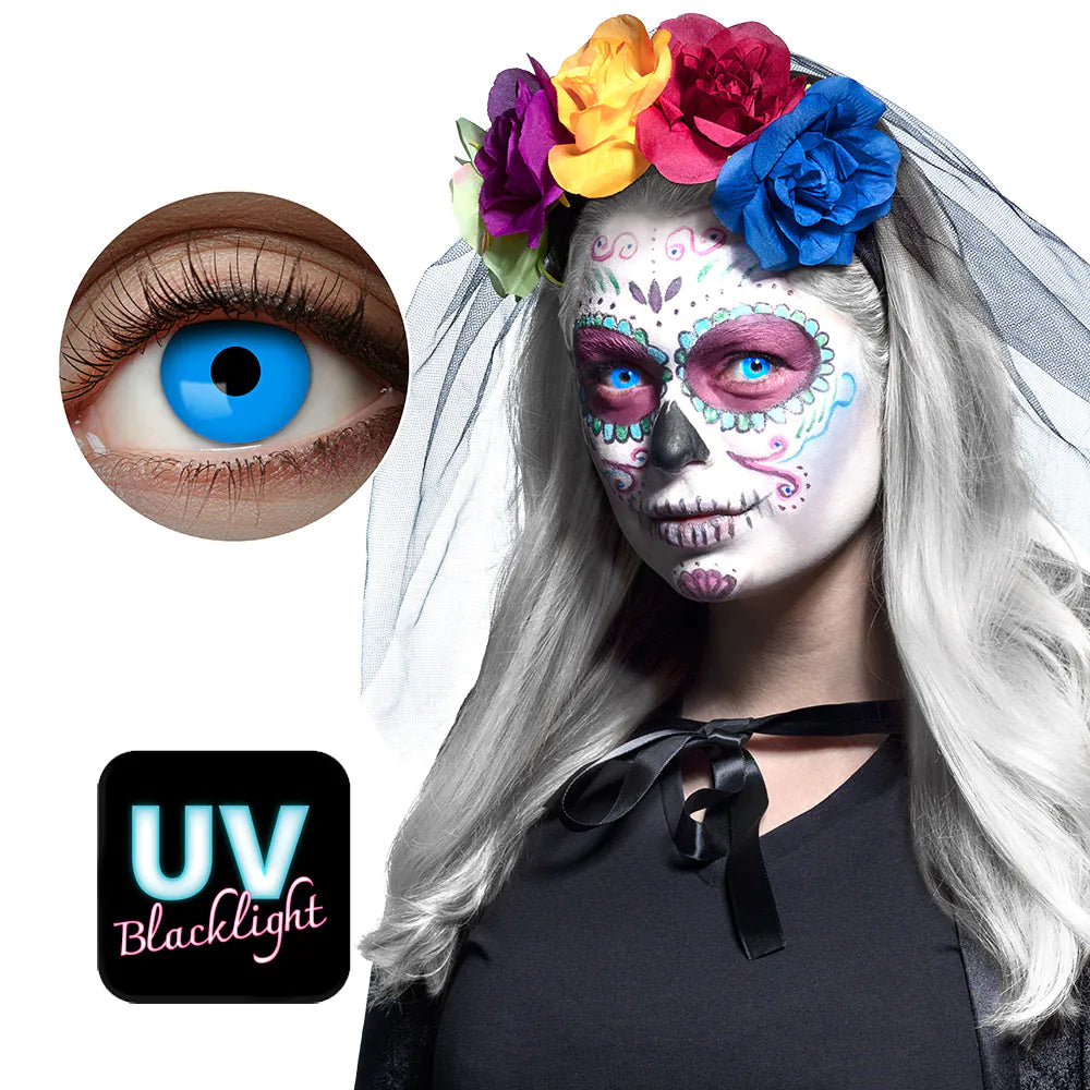 Alltid drömt om att ha blå ögon och inte bara blå utan knallblå heltäckande som även reagerar i uv-ljus och blir ännu blåare? Ja då är dessa färglinserna för dig. Dessa uv-linser lyser extra starkt i blått när uv-ljus träffar dem så när du kommer på en neon & uv-fest eller om halloweenfesten har blacklight ljus så kommer dina ögon stå ut extra mycket.