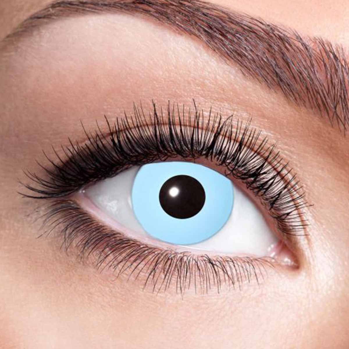 Isblå heltäckande linser för din halloweenutklädnad är det perfekta komplementet till din maskeraddräkt och halloween sminkning. Låt den isblå färgen av linsen täcka din riktiga ögonfärg. Isblå färglinser ger en färgstark och kyld färg på dina ögon. Perfekt för den som ska klä ut sig till en vandrande fryst zombie, isprinsessa eller bara ha en kylig blick.